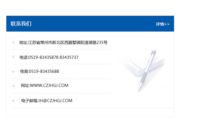 傳真:0519-83435688    郵編:213135    網址:WWW.czjhgj_com.dgjzfbj.com    電子郵箱:JH@czjhgj_com.dgjzfbj.com
